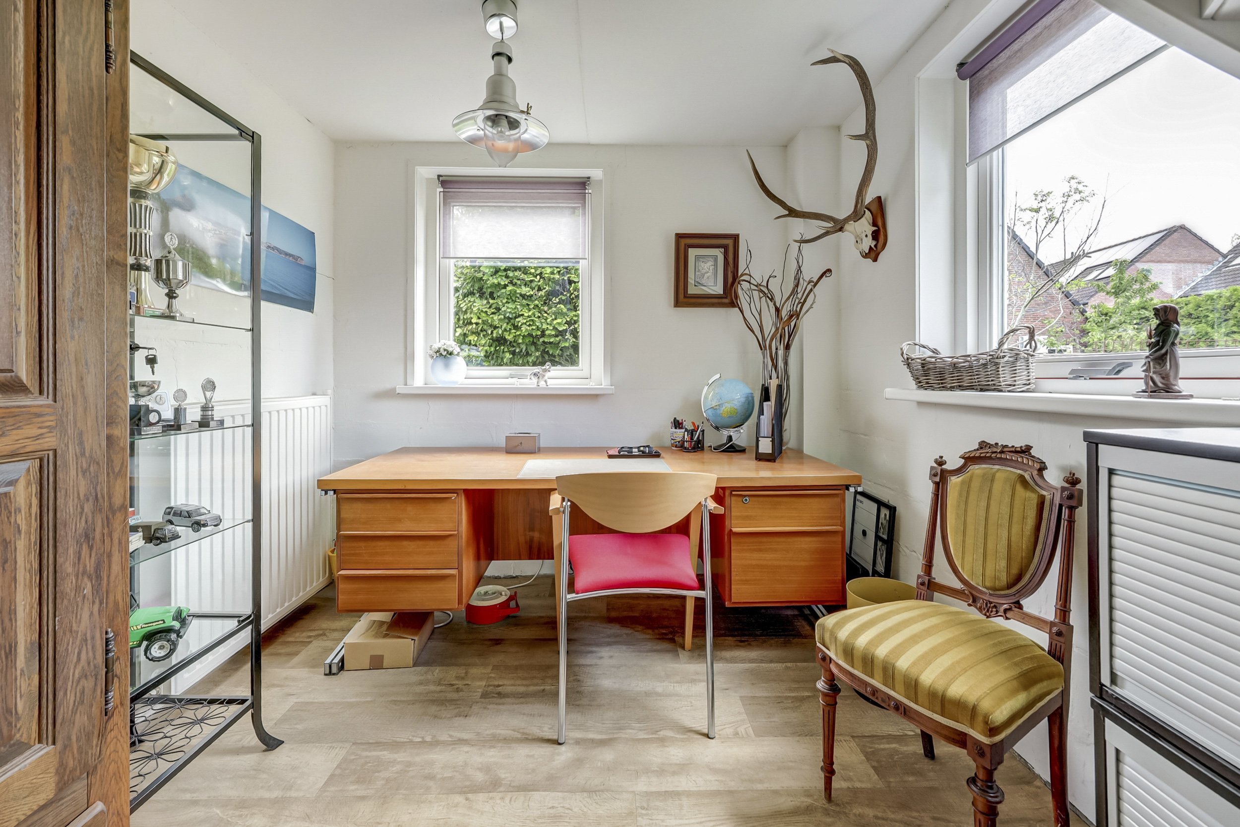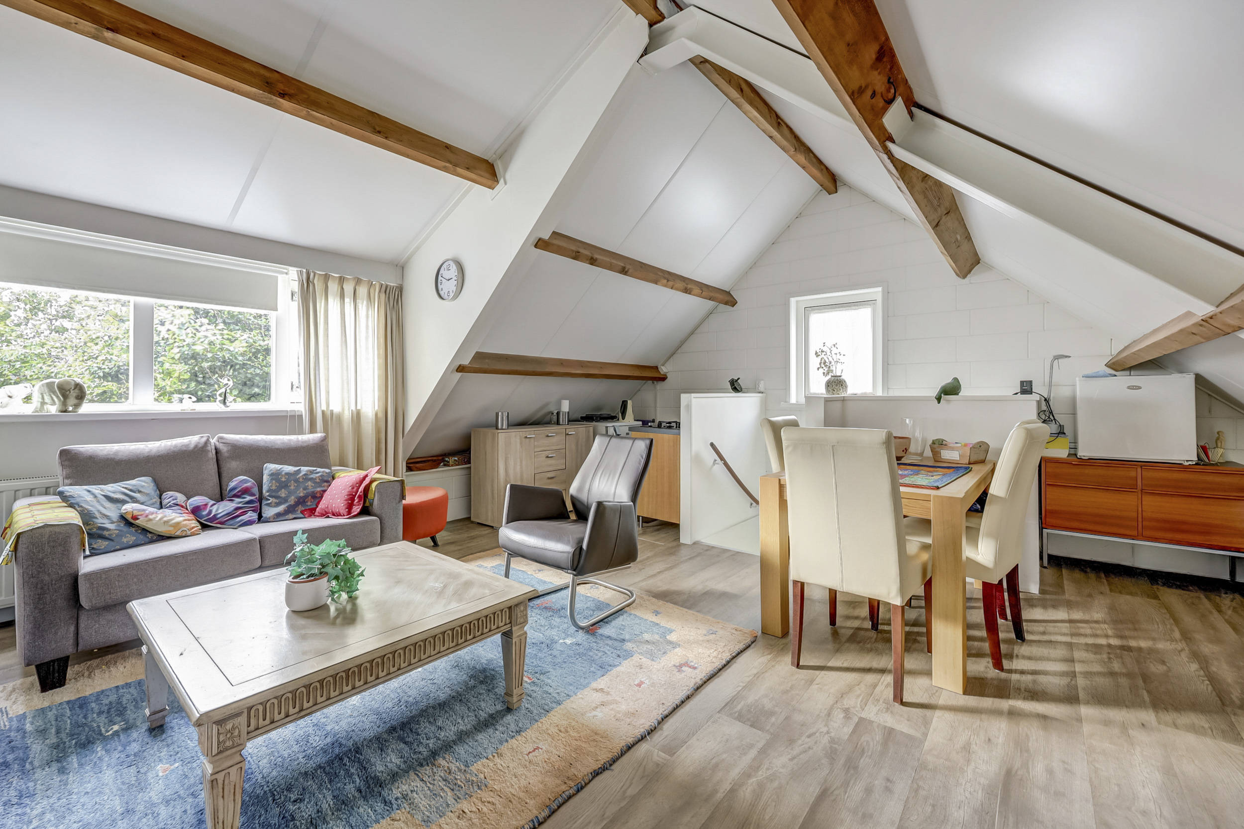 Het hoofdverblijf is licht en sfeervol, met ruime leefruimtes, een moderne keuken met spoeleiland, een comfortabele woonkamer met airco, een eetkamer met directe tuinverbinding en vier volwaardige slaapkamers op de eerste verdieping. De zolder biedt bovendien flexibiliteit voor een extra slaapkamer of hobbyruimte. Het bijgebouw (2013) is volledig zelfstandig met eigen cv-installatie en biedt extra woon- en werkruimte.