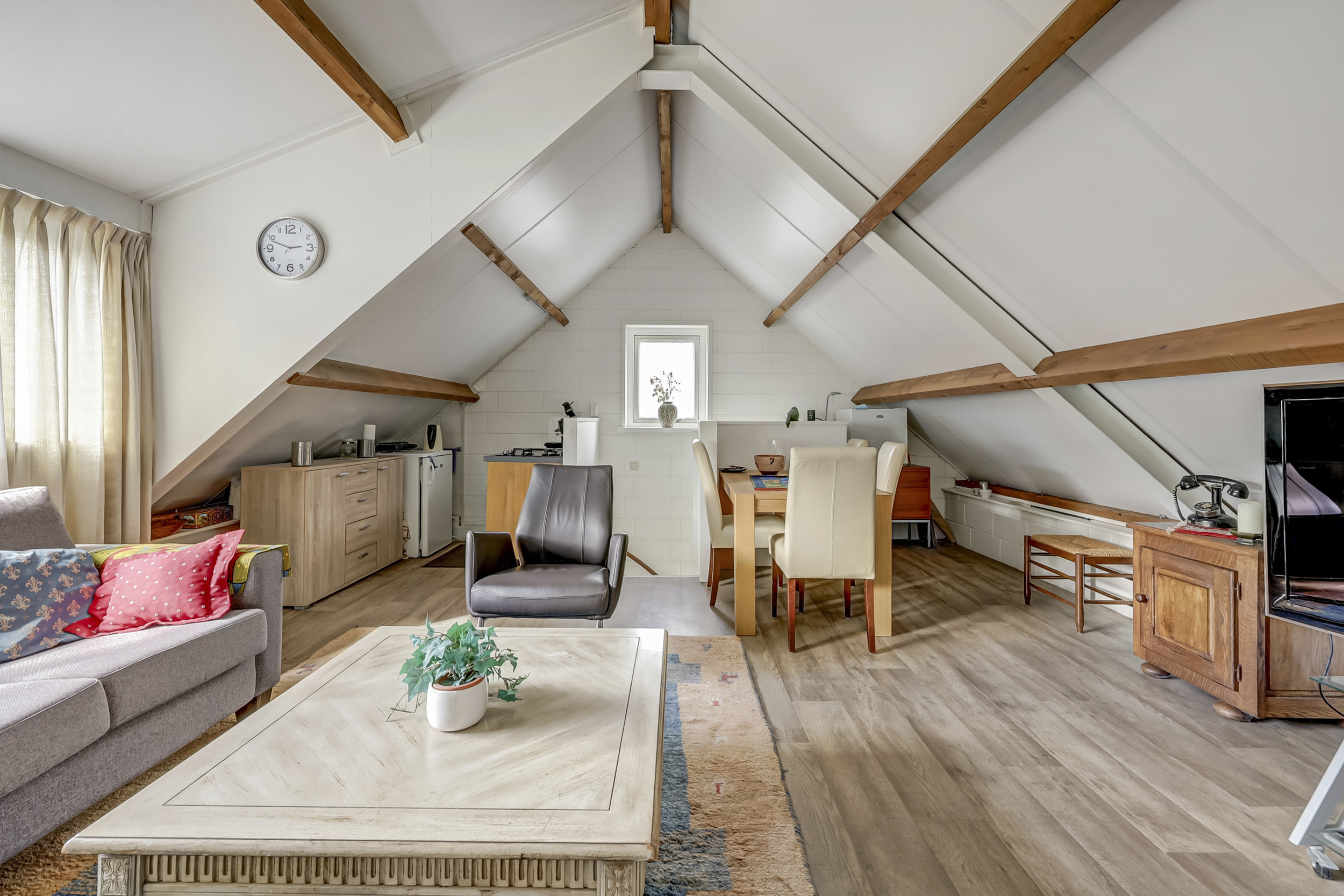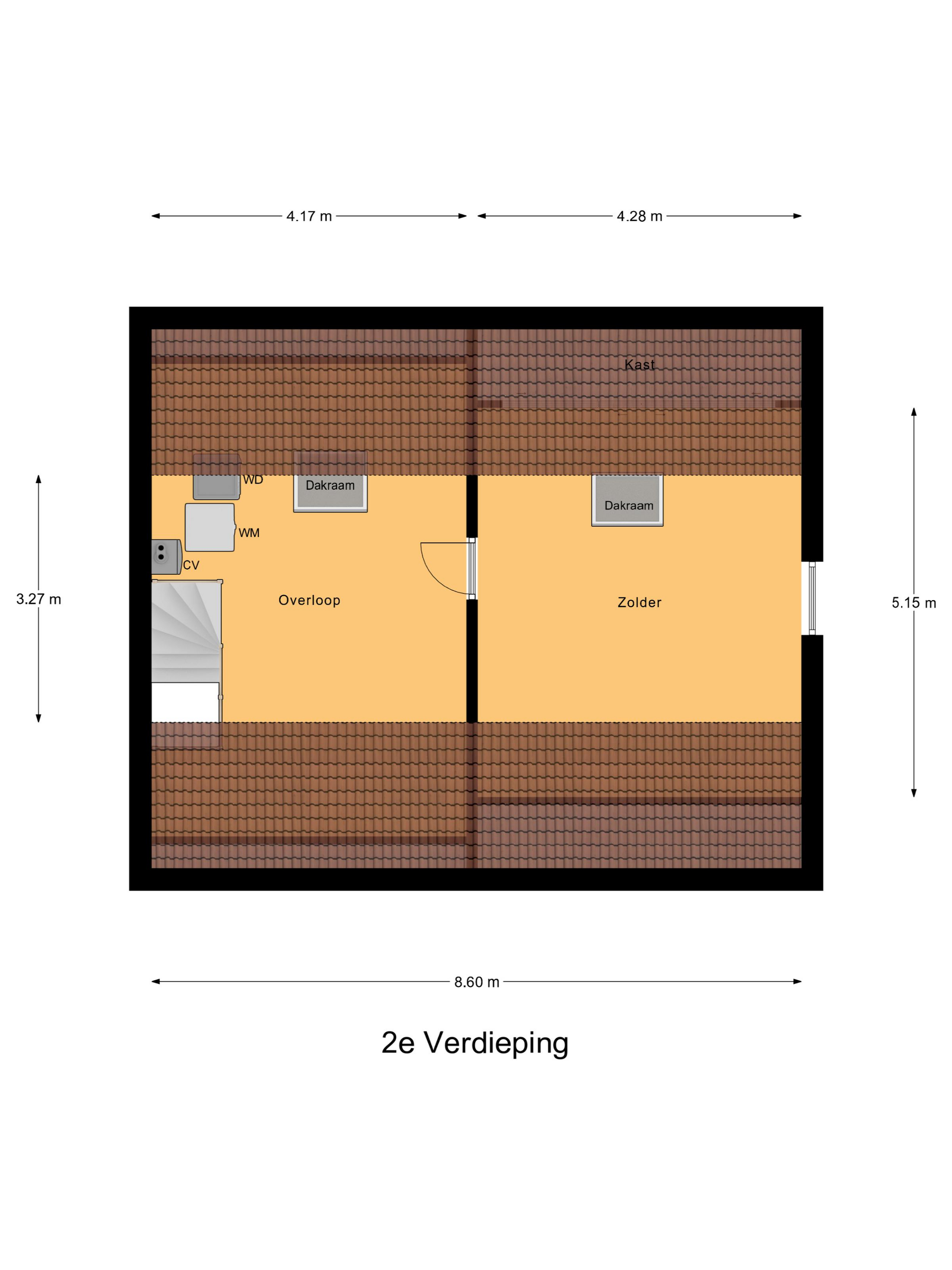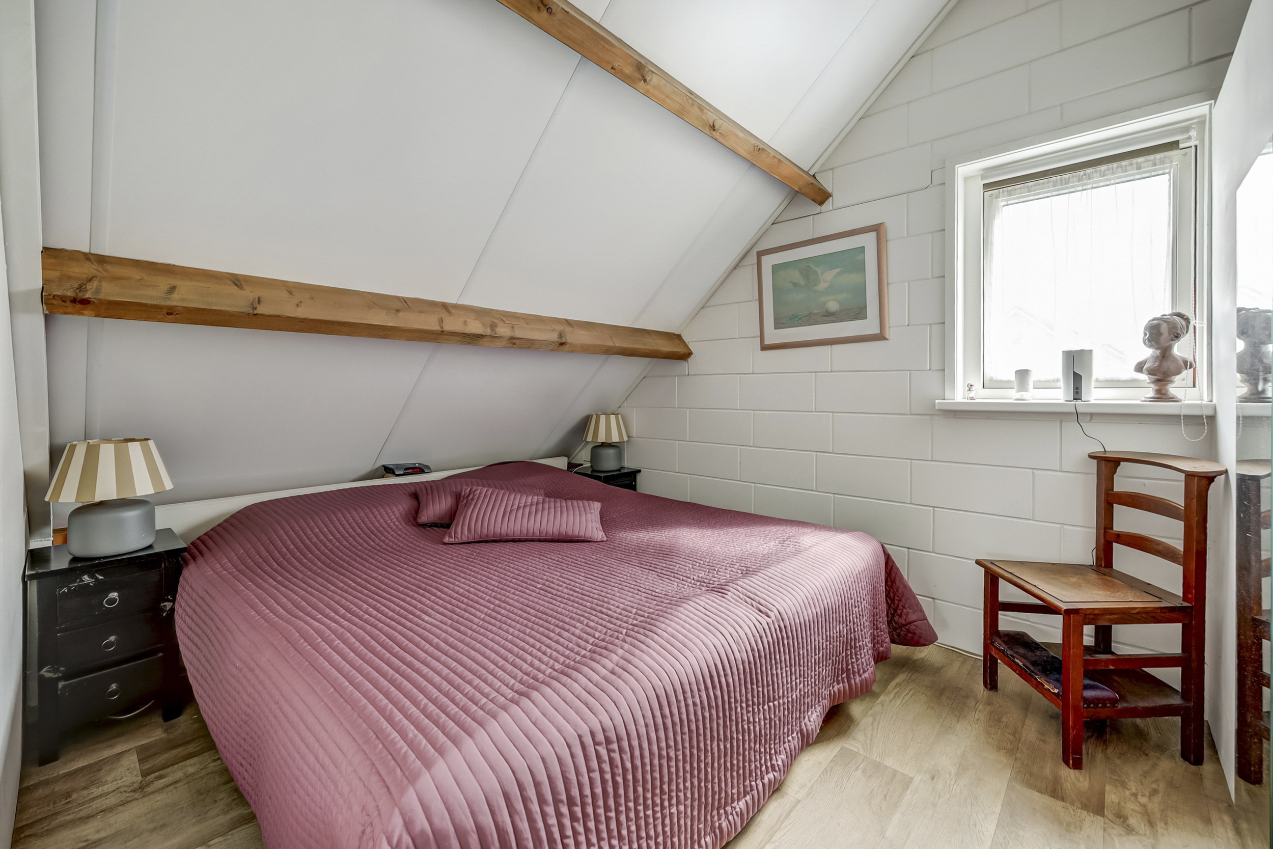 De volwaardige tweede verdieping biedt een ruime zolder, bereikbaar via een vaste trap. Deze zolder is in tweeën gedeeld, met een ruime overloop en een kamer. Op de overloop vindt u de cv-installatie uit 2010, de wasmachineaansluiting en twee dakramen, die zorgen voor extra lichtinval. De kamer op deze verdieping is flexibel in te delen en kan bijvoorbeeld dienen als extra slaapkamer, hobbyruimte of berging.