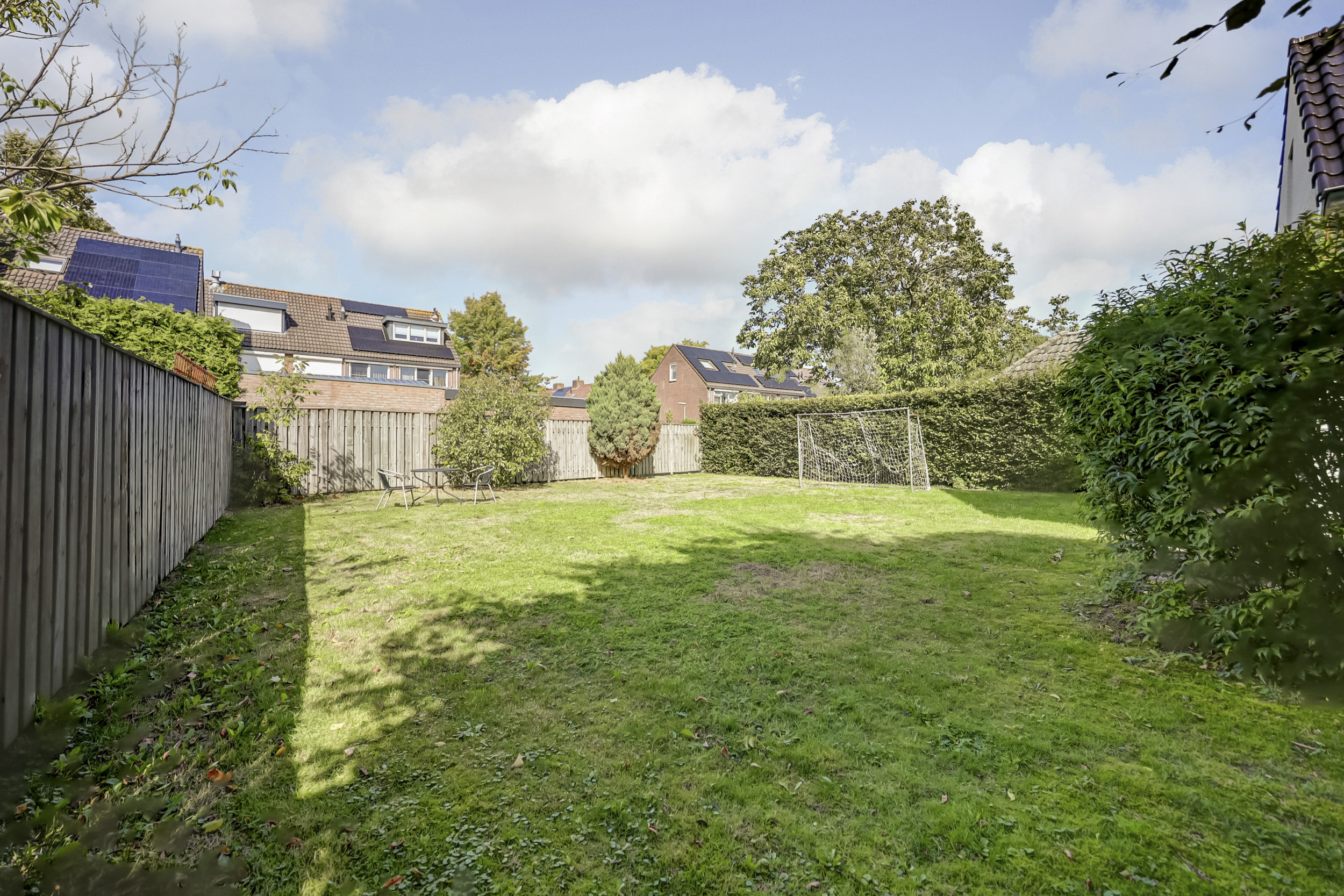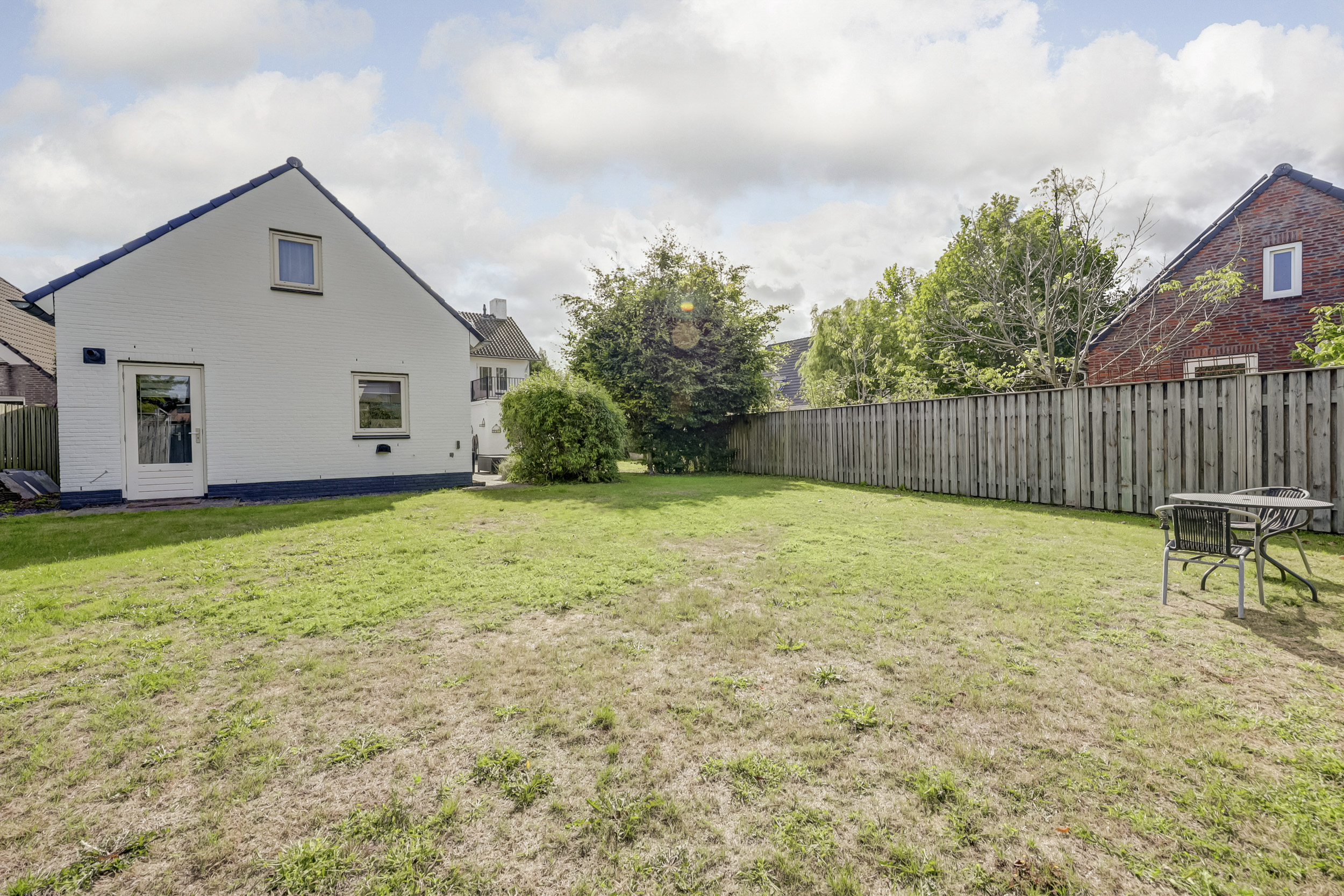 Het perceel van 771 m² biedt een royale en veelzijdige buitenruimte, die privacy en rust combineert met veel mogelijkheden om deze naar eigen wens in te richten. Direct aan de woning gelegen, tegen de achtergevel aan, is een ideale plek gecreëerd voor een sfeervolle tuinset met stoelen. Hier kan heerlijk genoten worden van de zon in combinatie met een gezellige borrel of diner. Aan de achterzijde van het perceel is een groot grasveld aanwezig, welke perfect is om te gebruiken als speelplek voor de kinderen of bijvoorbeeld voor het aanleggen van een moestuin. Er zijn mogelijkheden genoeg om het royale perceel volledig naar eigen wens in te delen. Tot slot is er een praktische achterom aanwezig middels een houten poort. Via deze achterom bereikt u de ruime oprit. Deze ruime oprit, biedt voldoende plek voor meerdere voertuigen en directe toegang tot het bijgebouw.