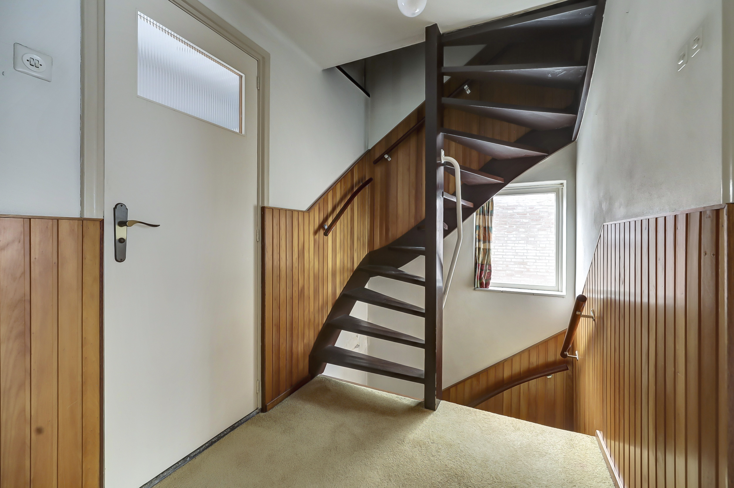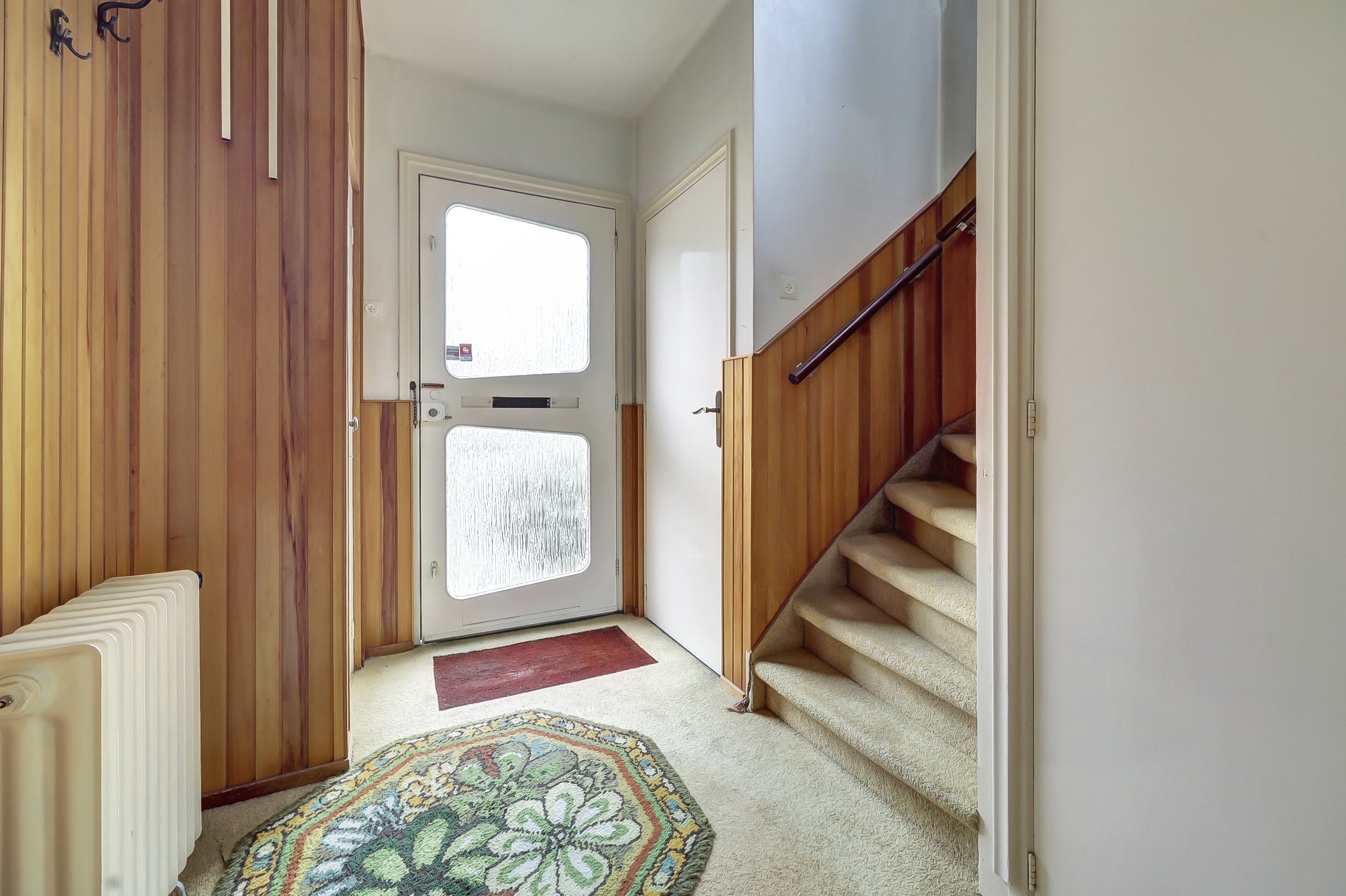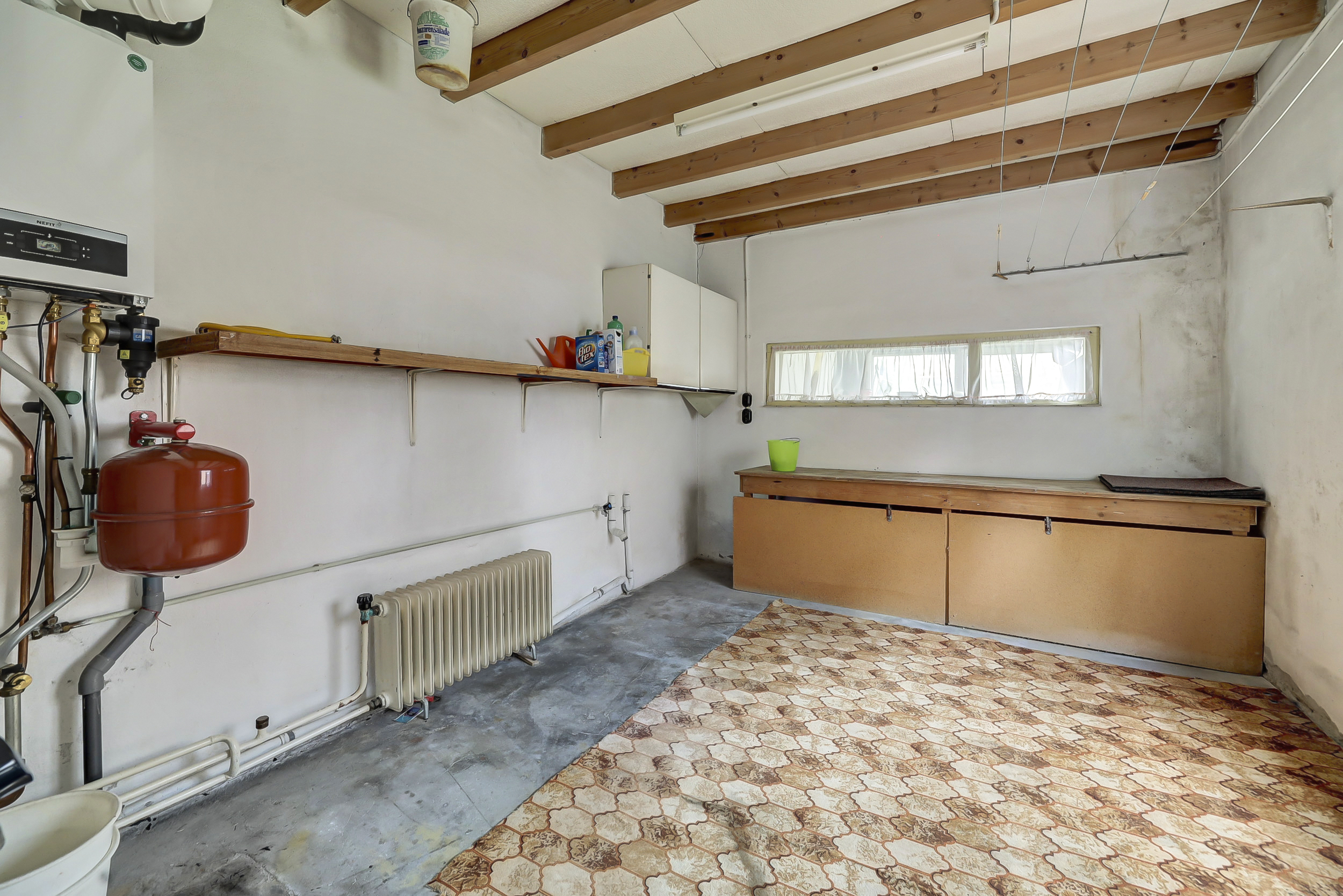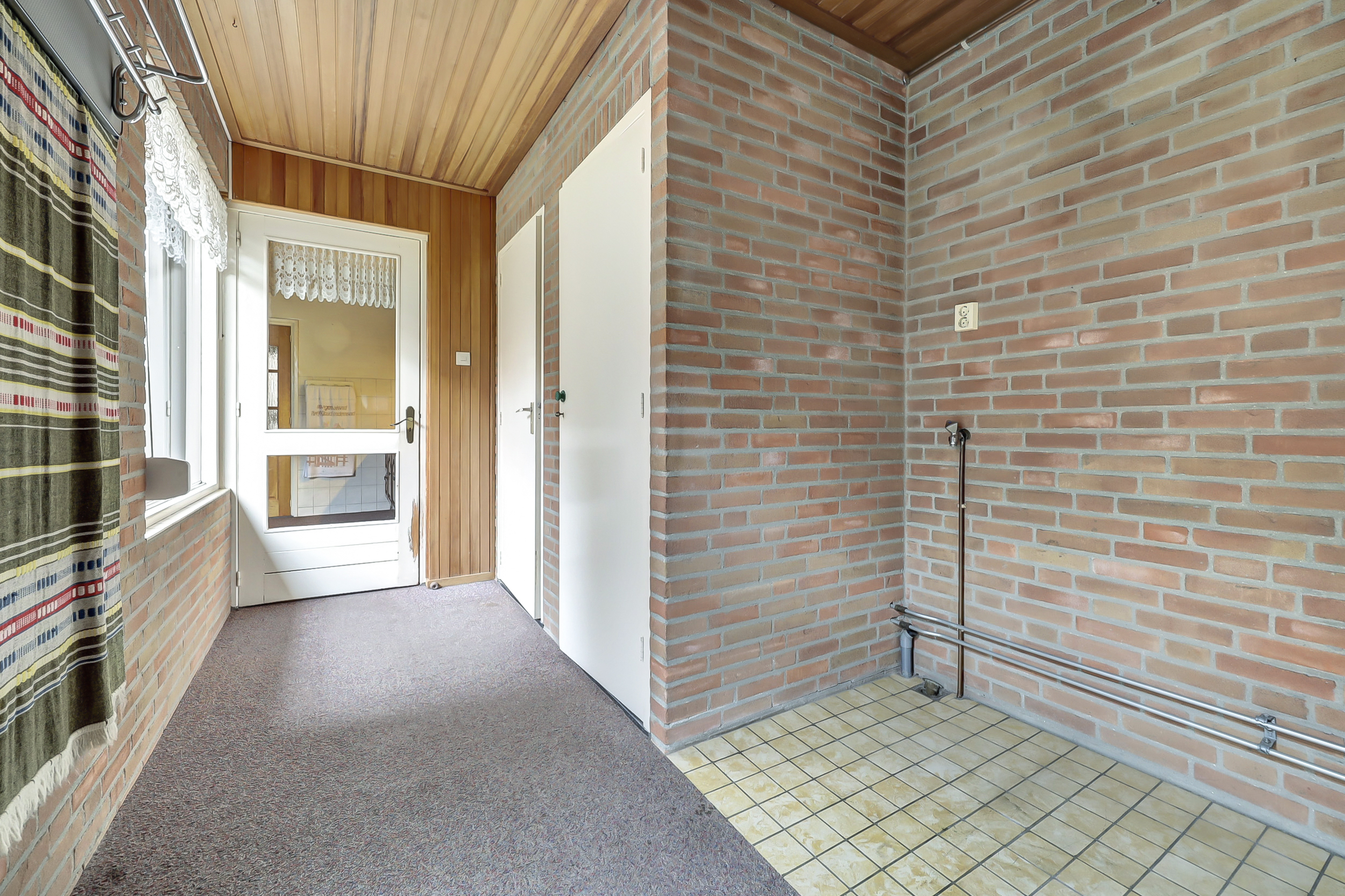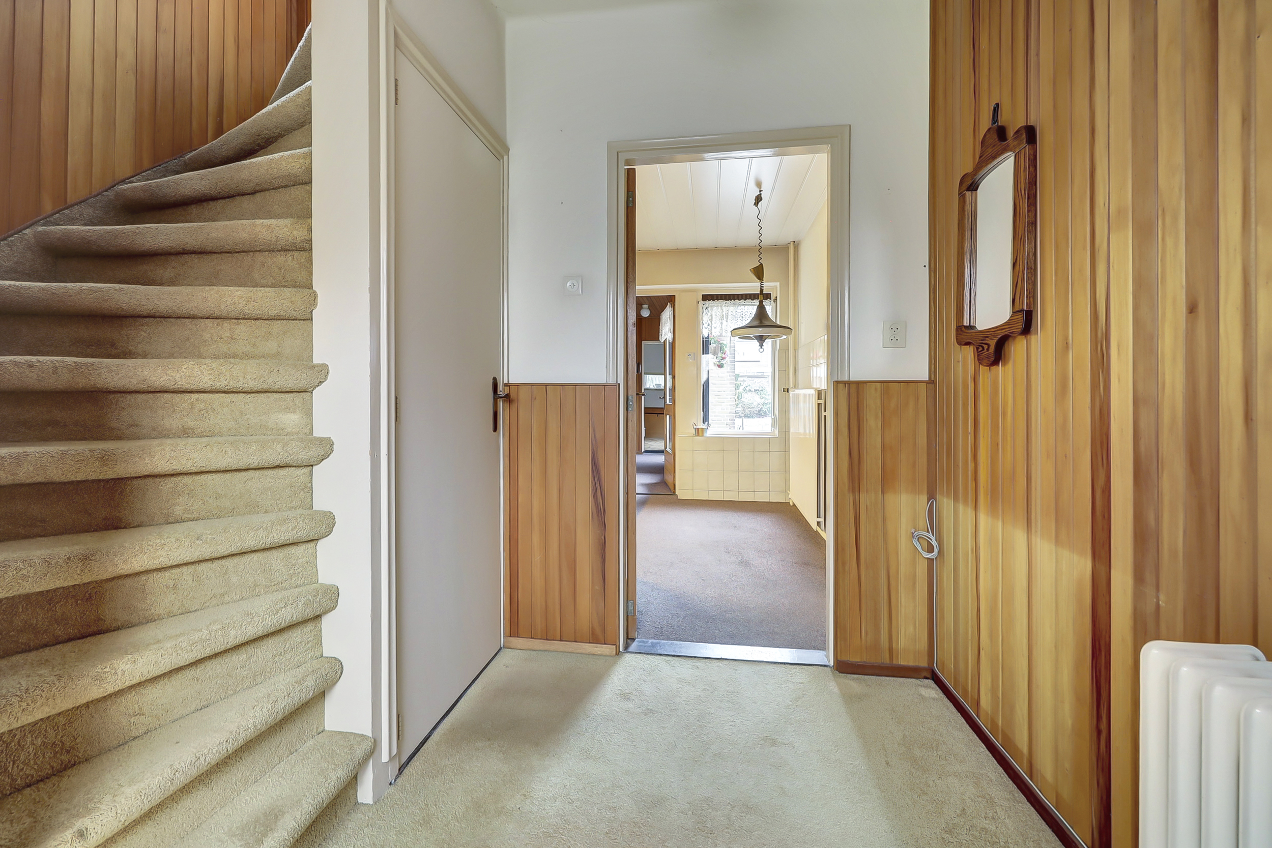 Aansluitend aan de keuken bevindt zich een tweede hal met toilet, extra kastruimte en de achterdeur naar de tuin. Hier is tevens toegang tot de berging waar de cv-ketel is opgesteld. De begane grond biedt diverse mogelijkheden voor herindeling en modernisering.