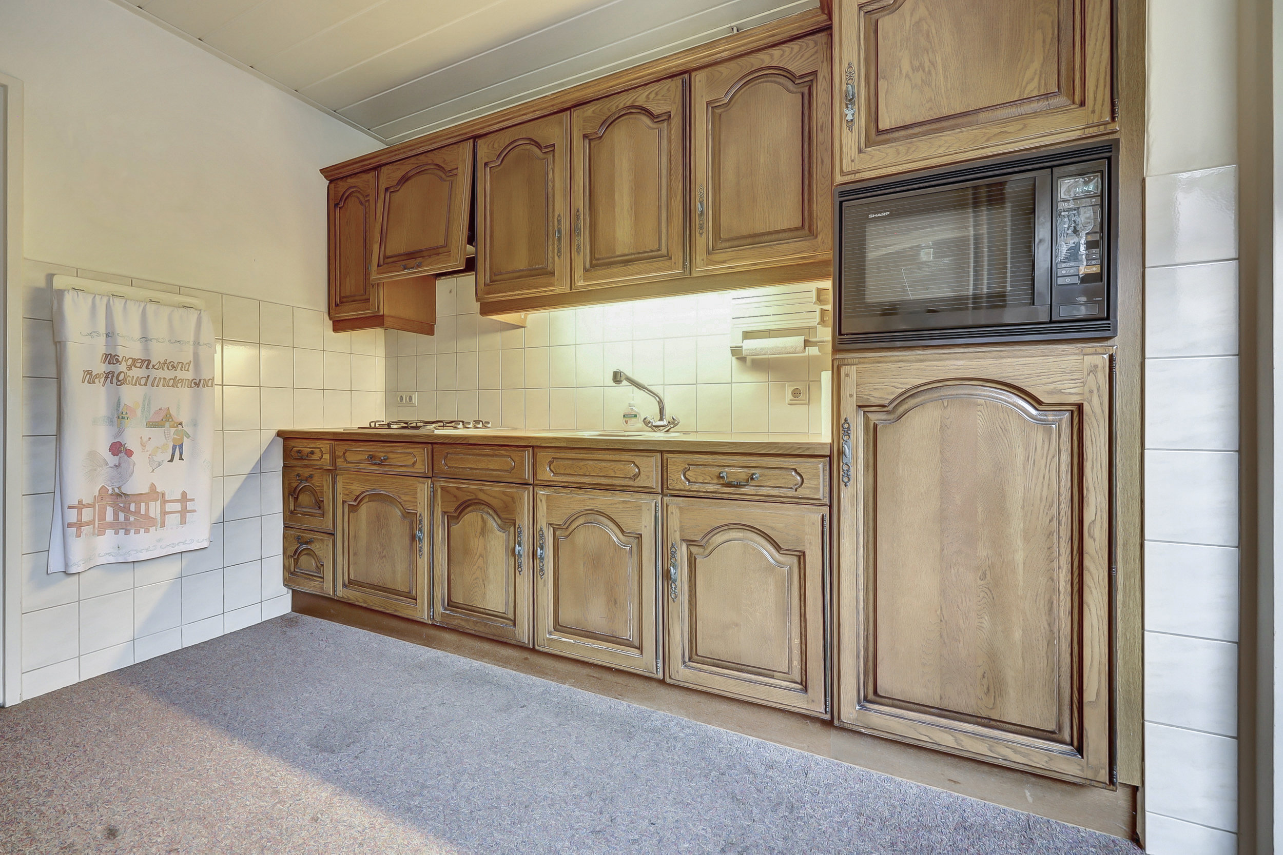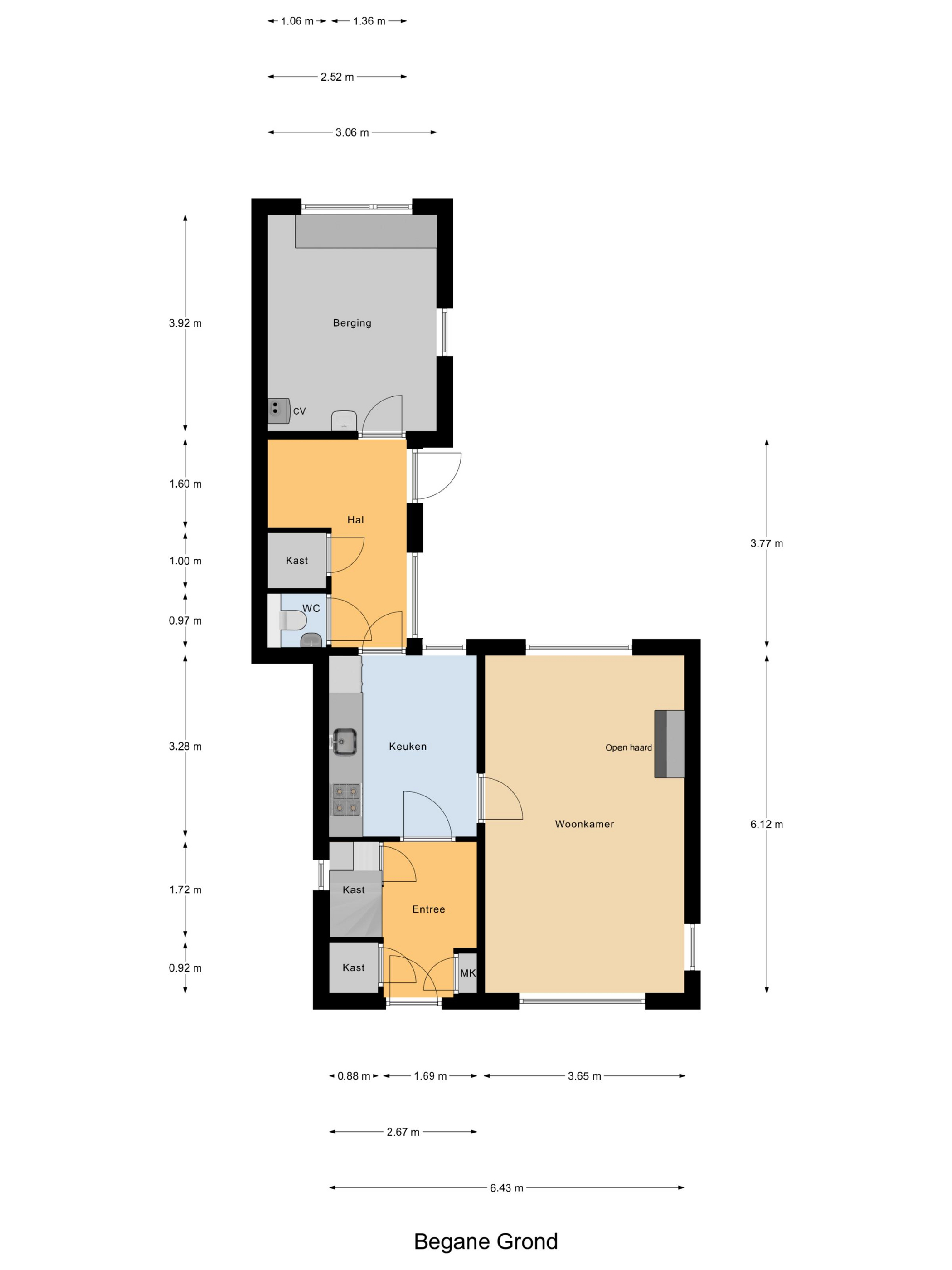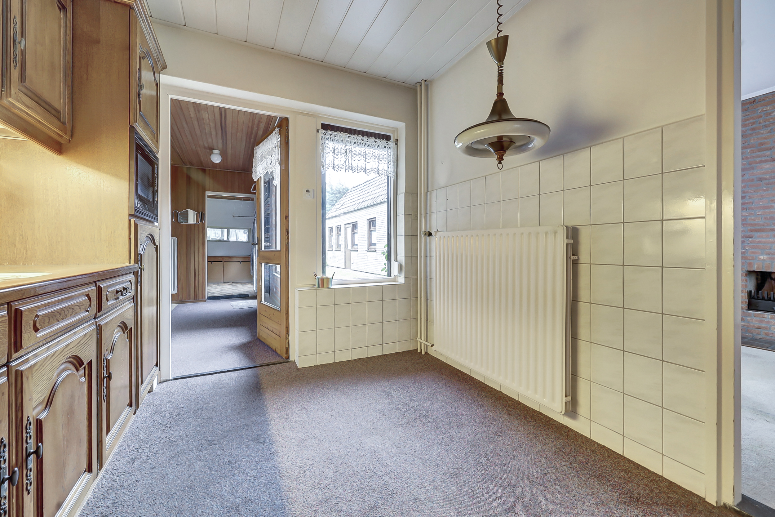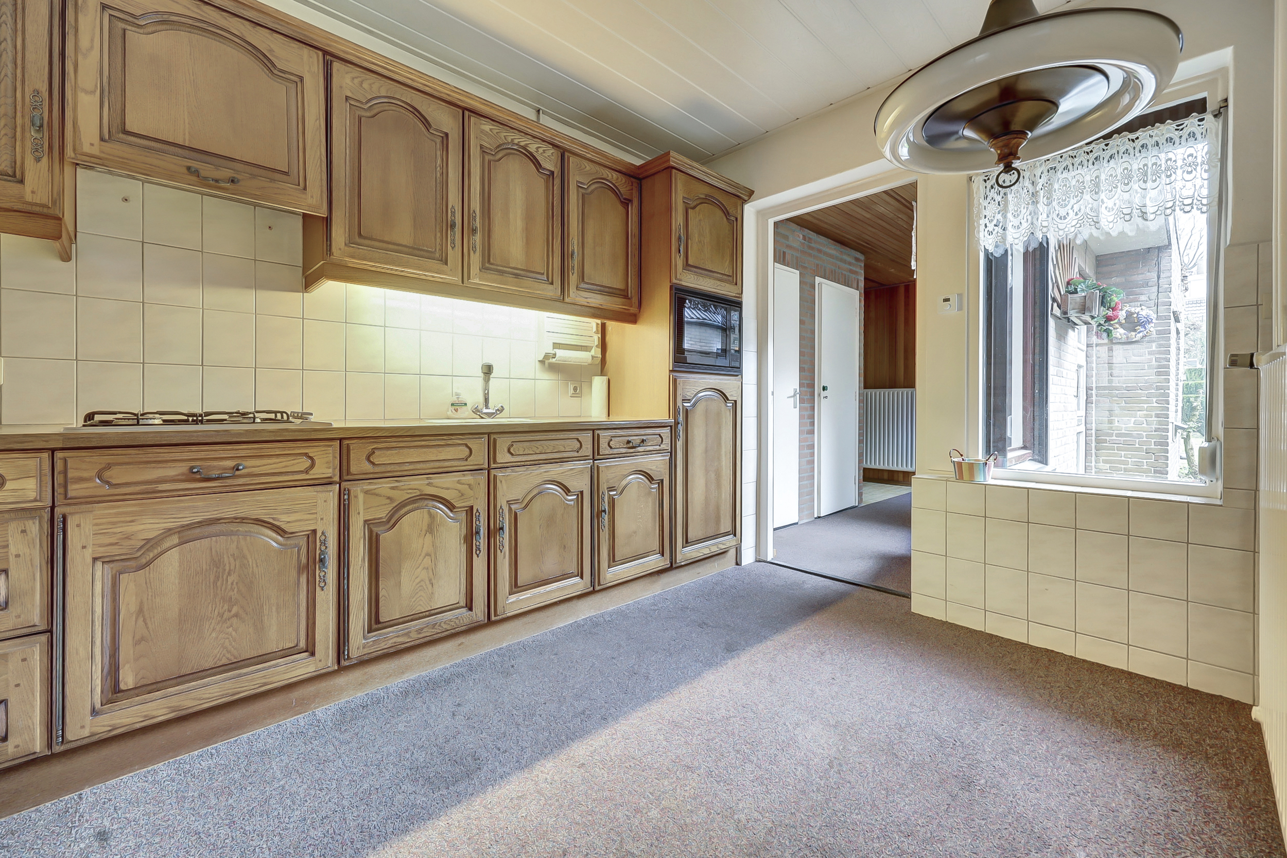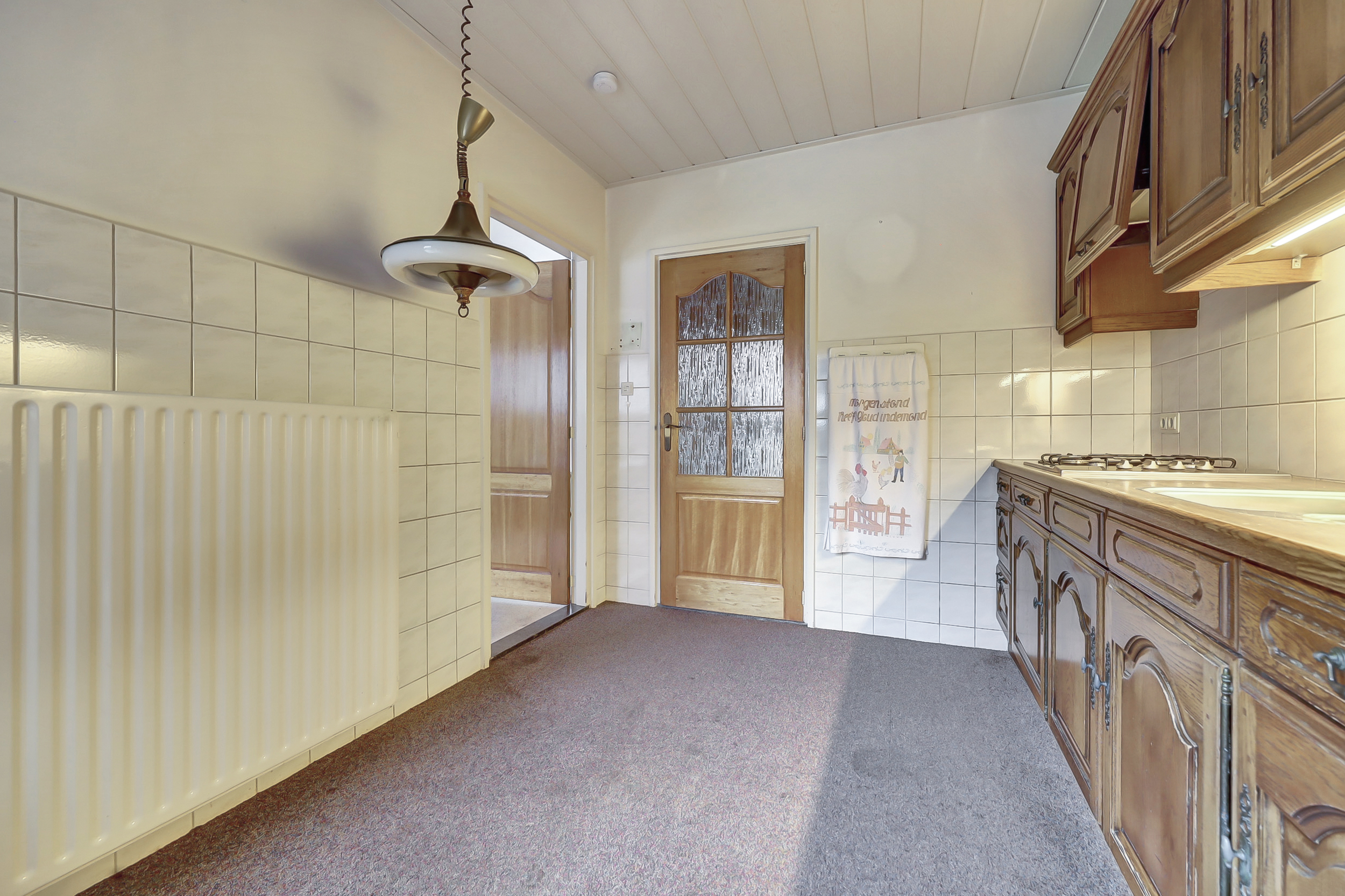 Via de entree kom je in de hal met meterkast en praktische opbergkast. Vanuit hier is de afgesloten keuken bereikbaar. De keuken is een separate ruimte met uitzicht richting de achterzijde van de woning en biedt voldoende mogelijkheden om een eigentijdse woonkeuken te realiseren.