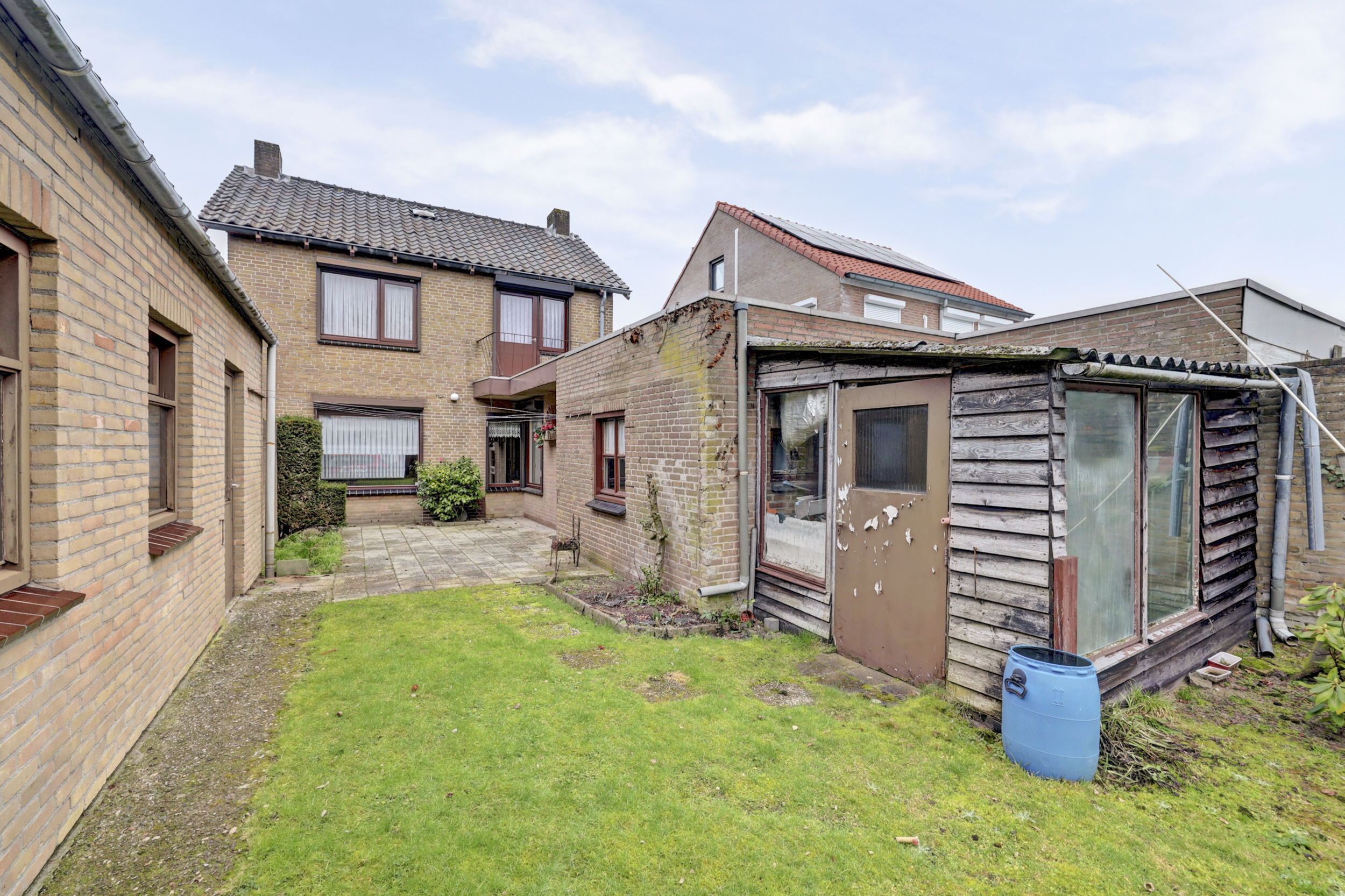 De achtertuin is opvallend diep en gunstig gelegen op het zuiden. Hierdoor geniet je hier vrijwel de gehele dag van de zon. Direct achter de woning bevindt zich een terras, met daarachter een gazon en volop ruimte om de tuin geheel naar eigen wens in te richten. Of je nu droomt van een royale overkapping, een moestuin, speelruimte voor kinderen of juist een groene oase met meerdere terrassen, deze tuin biedt hiervoor uitstekende mogelijkheden. Daarnaast bevinden zich hier een praktische, vrijstaande garage. Deze is voorzien van een elektrische deur en beschikt over een vliering, ideaal voor extra opslag. Achter de garage is bovendien nog een separate berging aanwezig, wat zorgt voor verrassend veel bergruimte. Perfect voor hobbyisten, opslag van gereedschap of het stallen van fietsen. De tuin beschikt daarnaast over een achterom, wat extra gemak biedt. Kortom: een diepe zonnige tuin met volop potentie én praktische bijgebouwen die het geheel compleet maken.