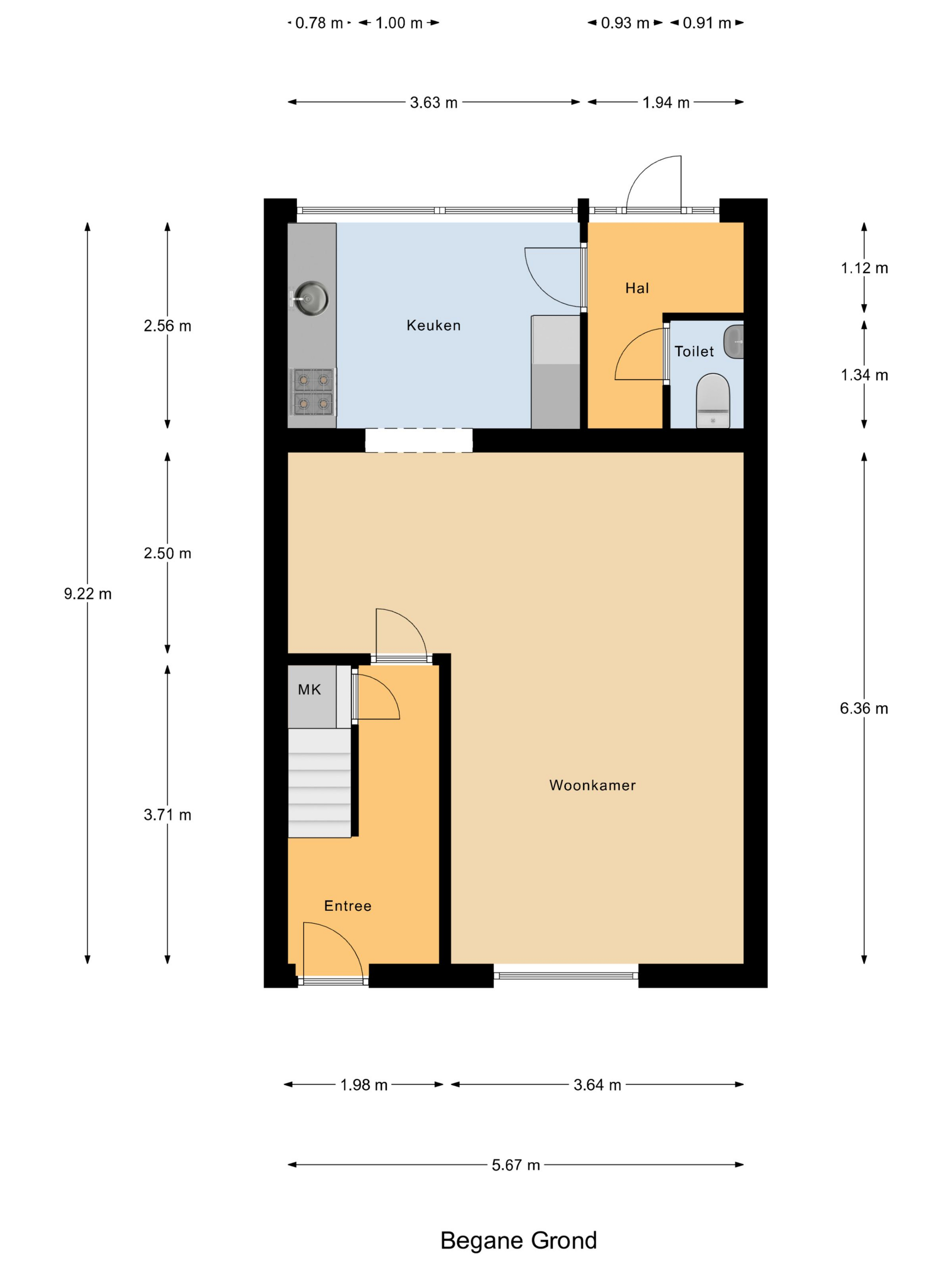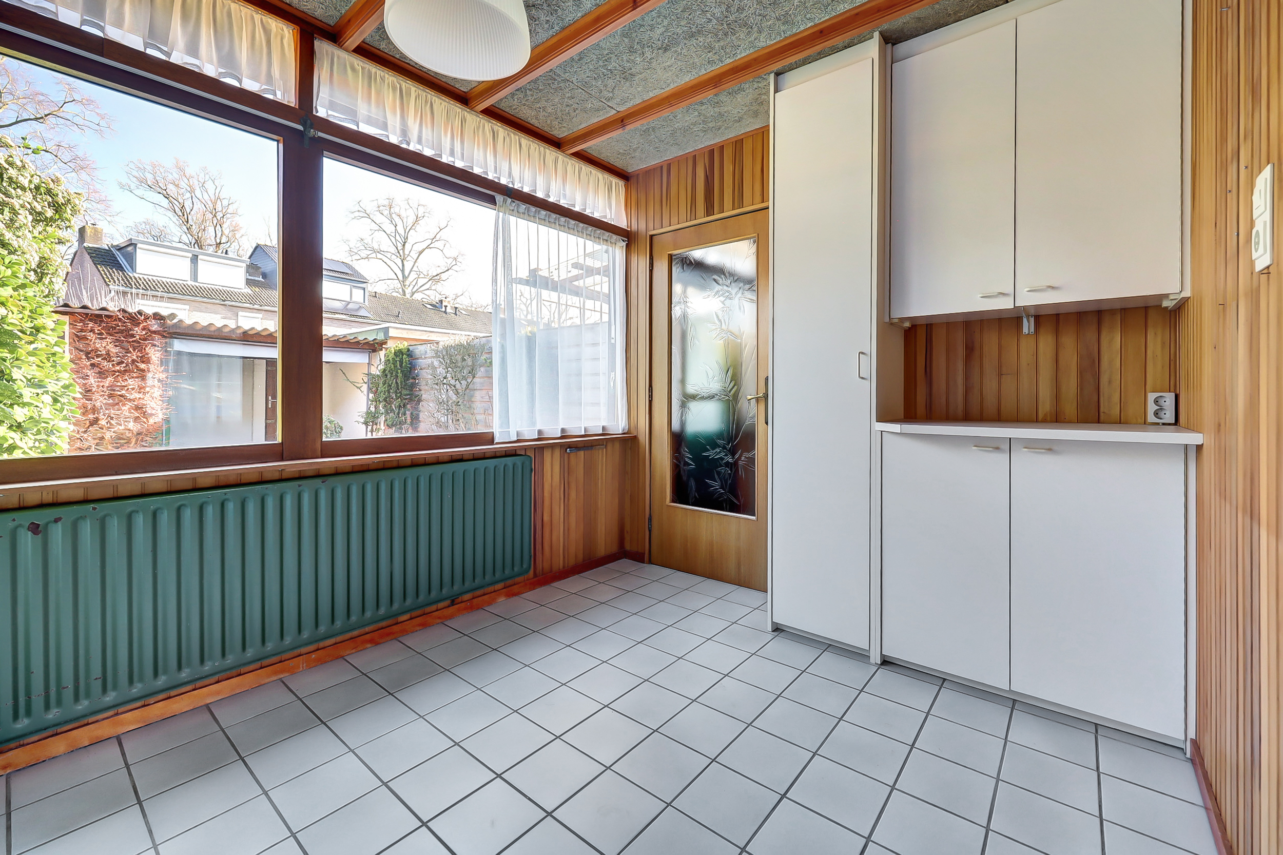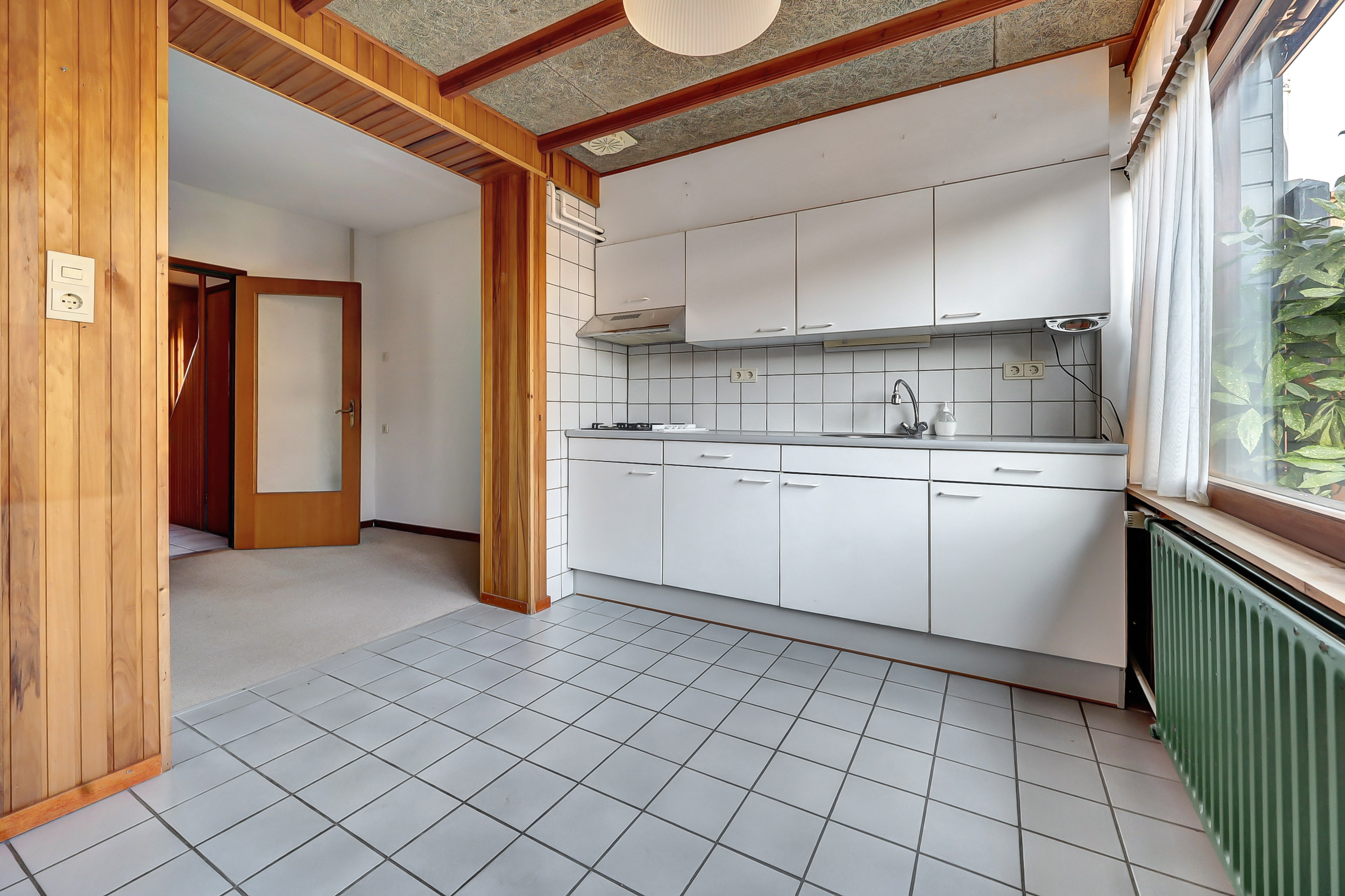 Je komt binnen via een ruime hal met trapopgang en trapkast. De woonkamer is in het verleden uitgebouwd, waardoor er een prettige leefruimte is ontstaan. In de uitbouw bevindt zich nu de keuken, met aansluitend een tussenportaal dat toegang geeft tot het toilet en de achtertuin. Een fijne basis om opnieuw in te delen en te moderniseren naar jouw woonwensen.
