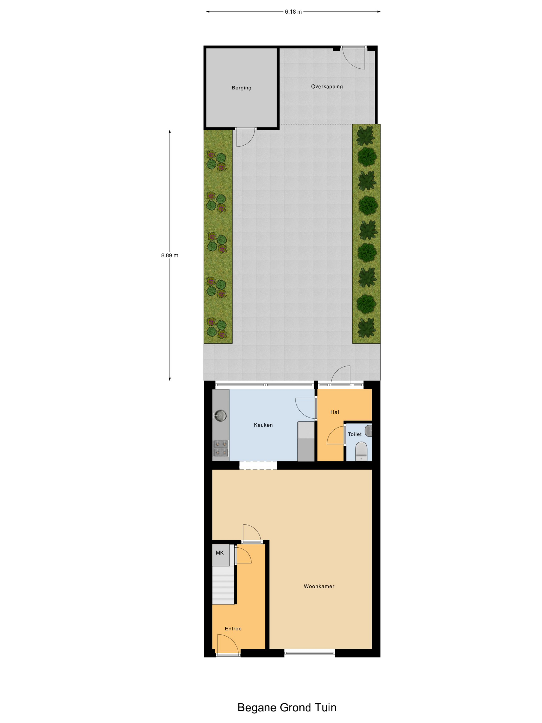 De diepe achtertuin op het oosten is een groot pluspunt. Hier geniet je al vroeg op de dag van de zon, met volop ruimte voor groen, een terras en lange zomeravonden. Achterin de tuin staat een stenen berging met overkapping en er is een praktische achterom.