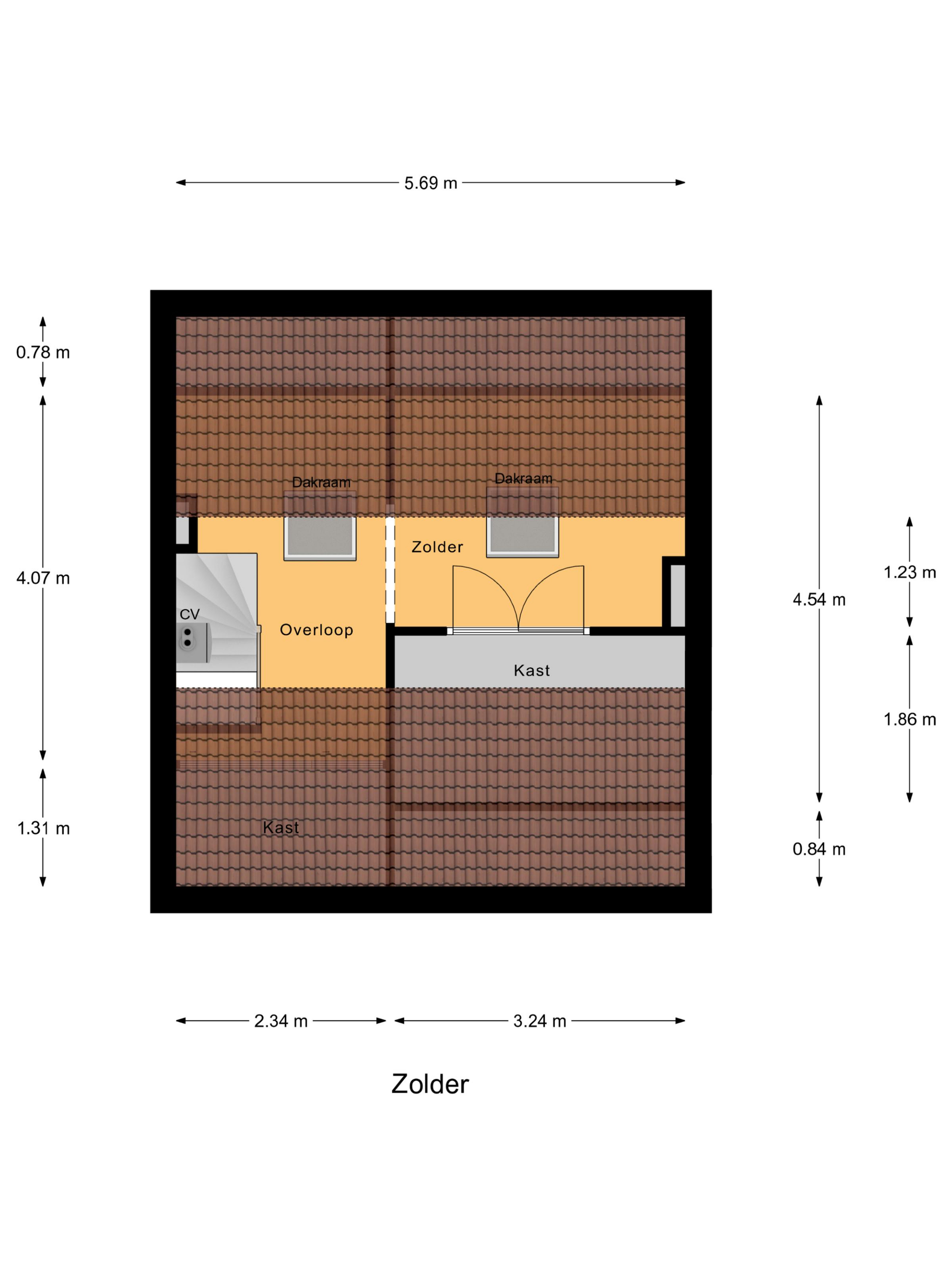 De zolder is bereikbaar via een vaste trap en wordt momenteel gebruikt als bergruimte. Door de hoogte (< 2 meter) telt deze verdieping nu mee als overige inpandige ruimte volgens de NEN2580-norm, maar met slimme aanpassingen is hier zeker extra woonruimte of een fijne werk-/slaapkamer te realiseren.