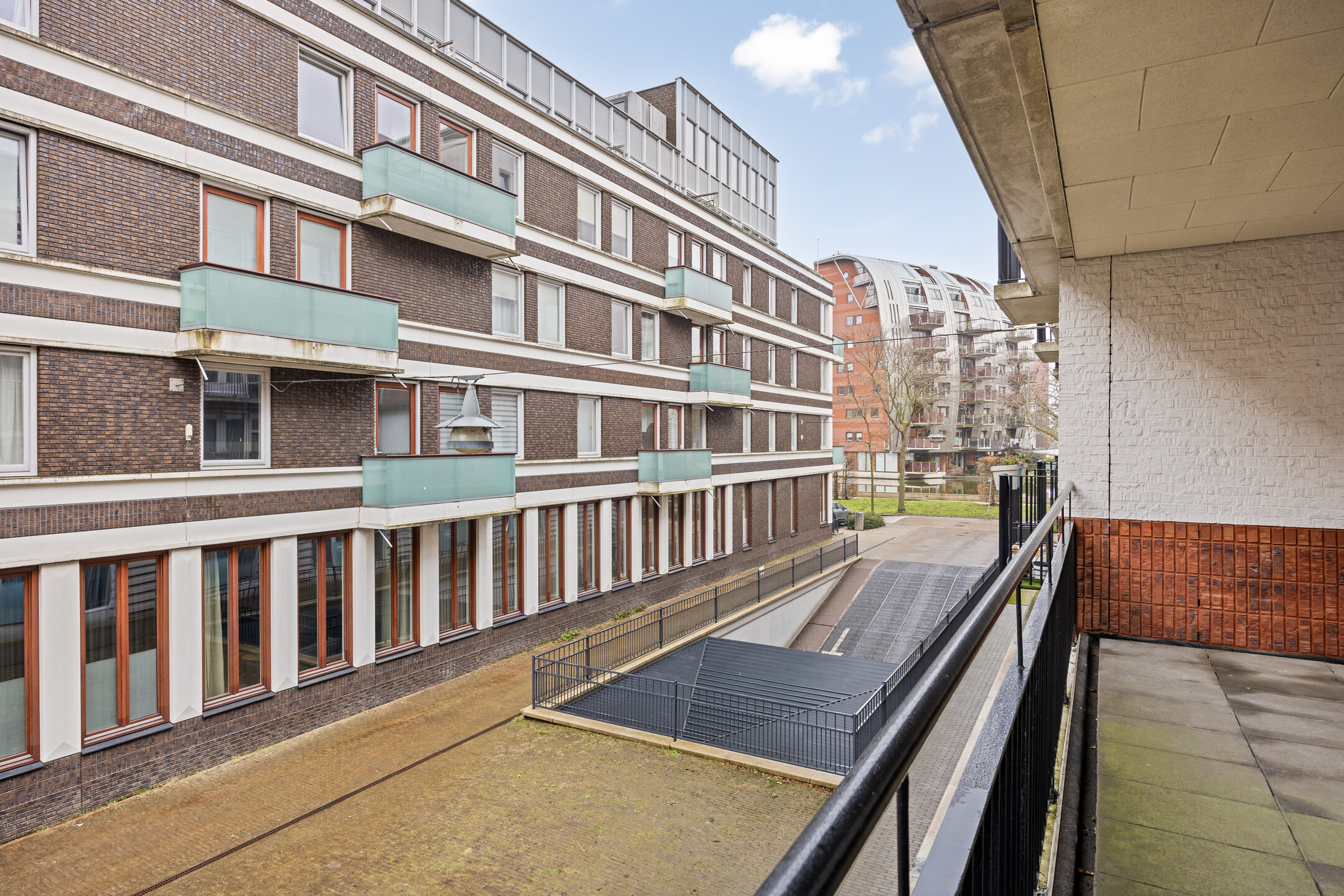 Via de gemeenschappelijke hal zijn het trappenhuis, de lift en het souterrain bereikbaar. Het appartement beschikt over een eigen parkeerplaats en een ruime berging in de ondergelegen parkeergarage. De garage is bereikbaar via een hellingbaan en een op afstand bedienbare toegangspoort.