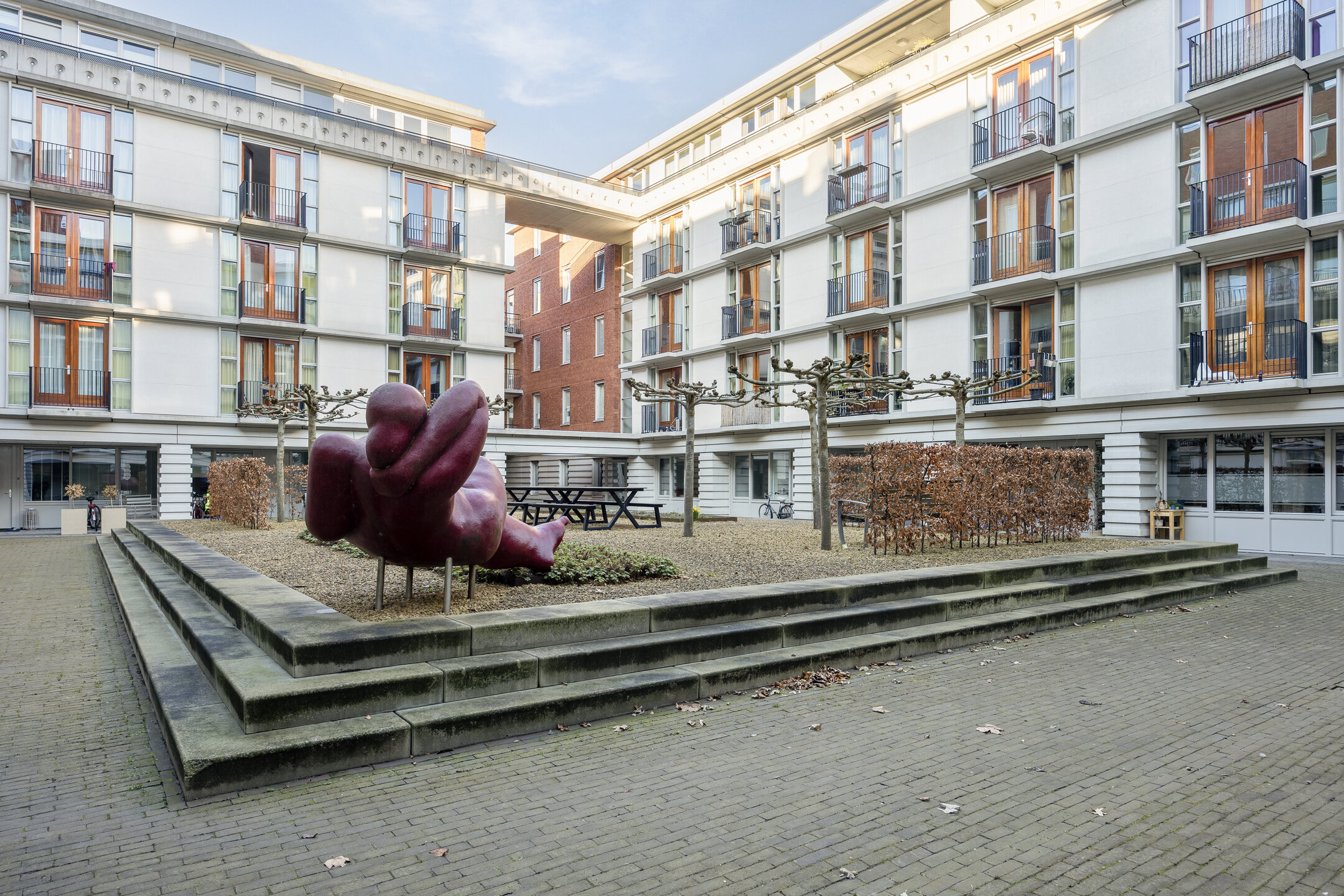 Het appartementencomplex beschikt over een fraai aangelegde gemeenschappelijke binnentuin waar u in alle rust kunt verblijven.